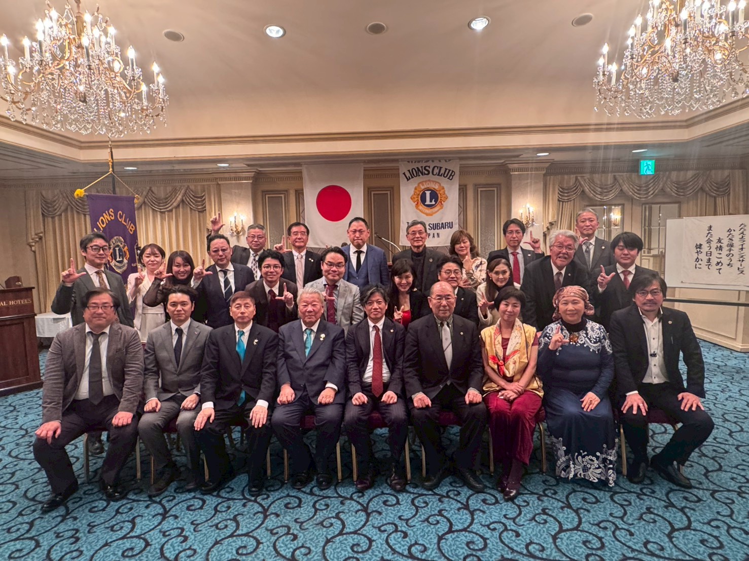開会にあたり、出席者全員で国歌「君が代」を斉唱し、続けてライオンズクラブの精神を象徴する「ライオンズヒム」を一同で声を合わせて斉唱いたしました。