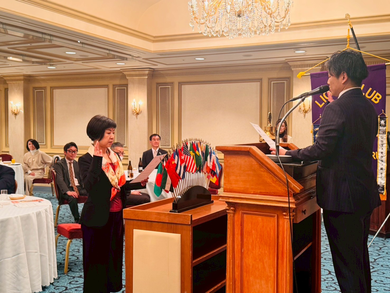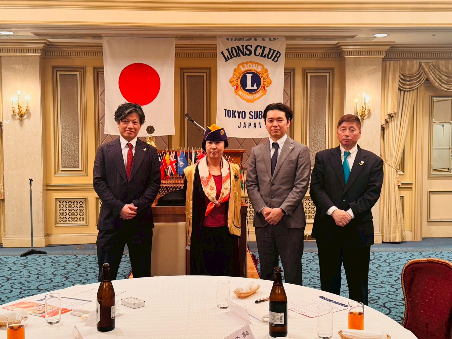 その後、祝宴の始まりとして、東京虎ノ門LCのメンバーであり、日本盲導犬協会理事やLCIF委員も務められている天間Lに、ライオンズの合言葉である「We Serve」の力強い発声とともに乾杯の音頭をとっていただきました。