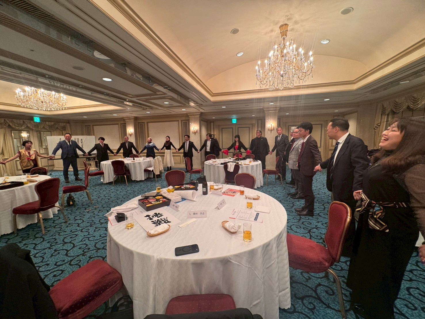 宴もたけなわとなった頃、吉武Lによる閉会挨拶をもって会の締めくくりへと向かい、別れを惜しみつつ、最後は全員で円陣を組み、再会を期して「また会う日まで」を勢いあるバンザイと共に斉唱いたしました。